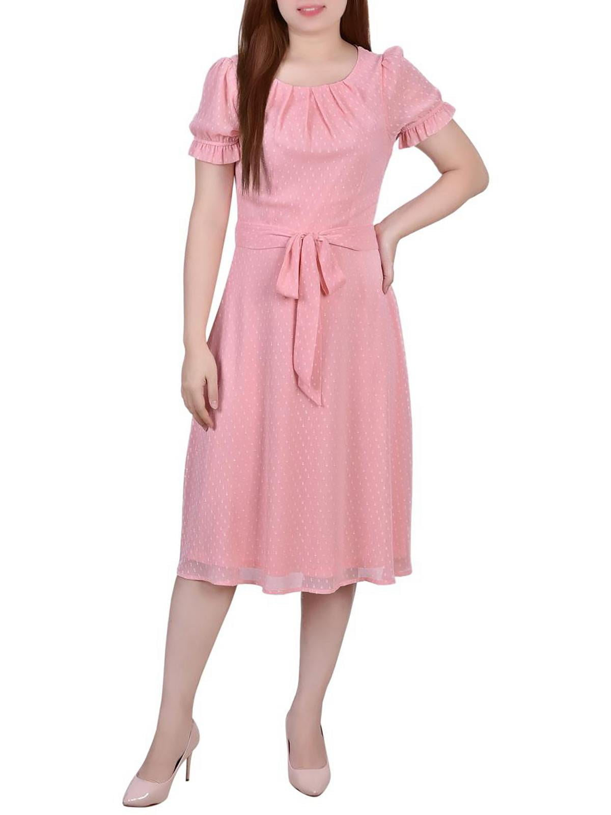 NY Collection Womens Petites Chiffon Knee-Length Midi Dress Pink Size PXL