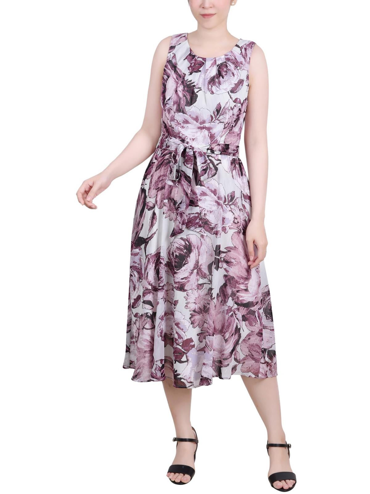 NY Collection Womens Petites Chiffon Printed Midi Dress Size L Petite Purple