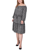 NY Collection Womens Petites Chiffon Printed Midi Dress Size PM