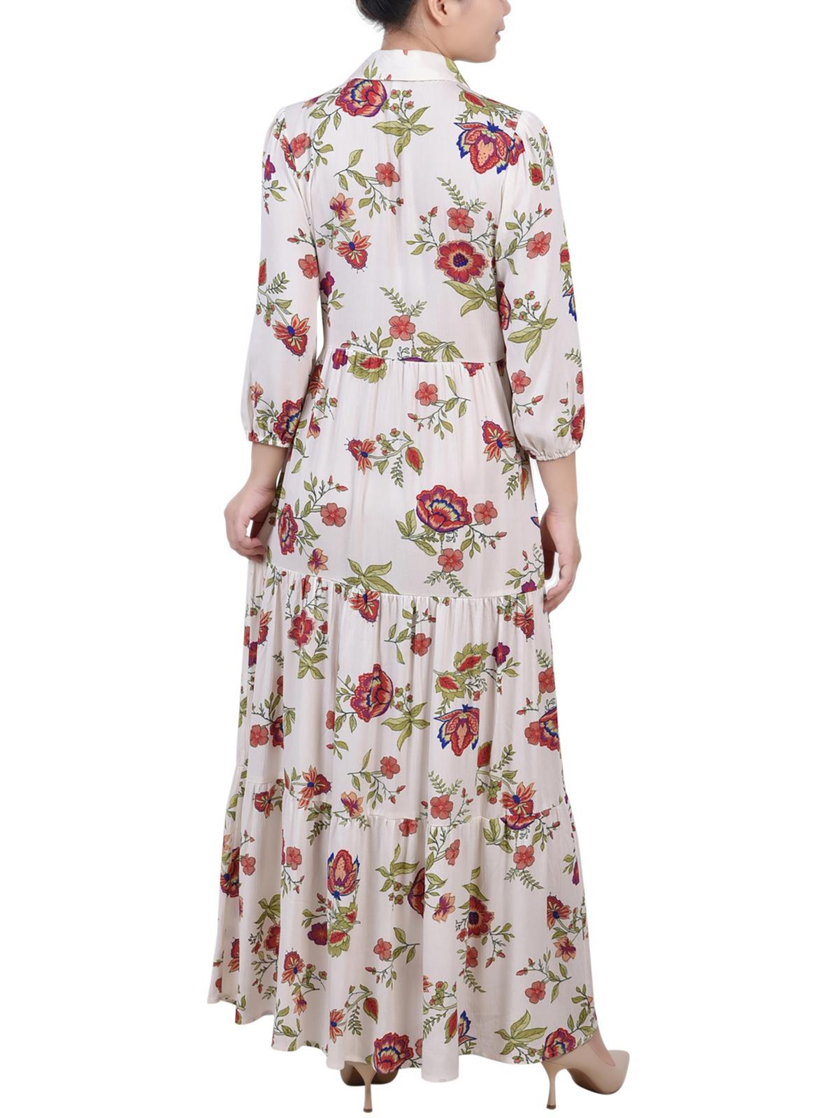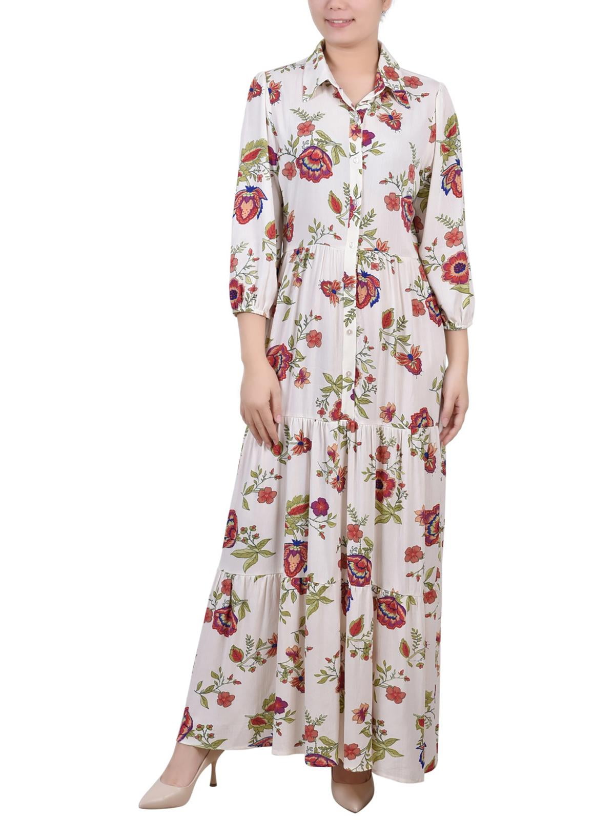 NY Collection Womens Petites Crinkle Tiered Maxi Dress Size PL Ivory
