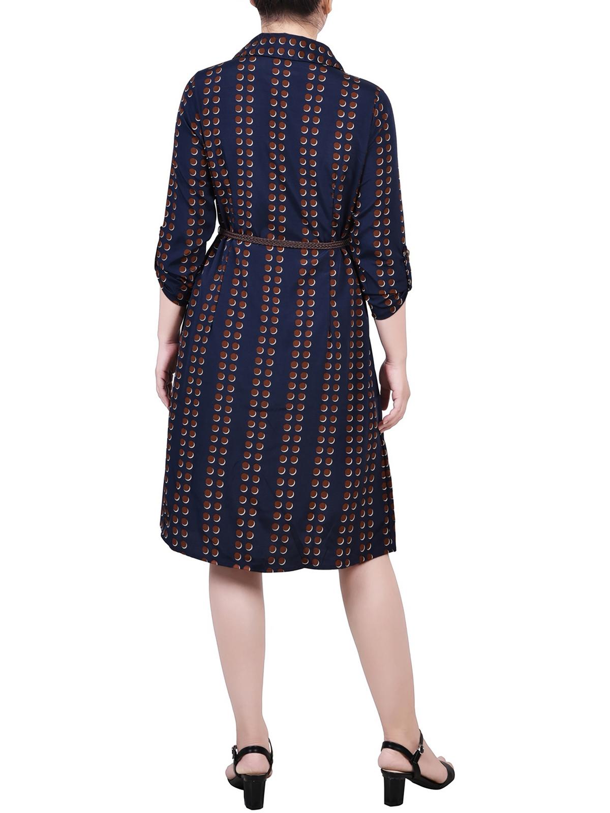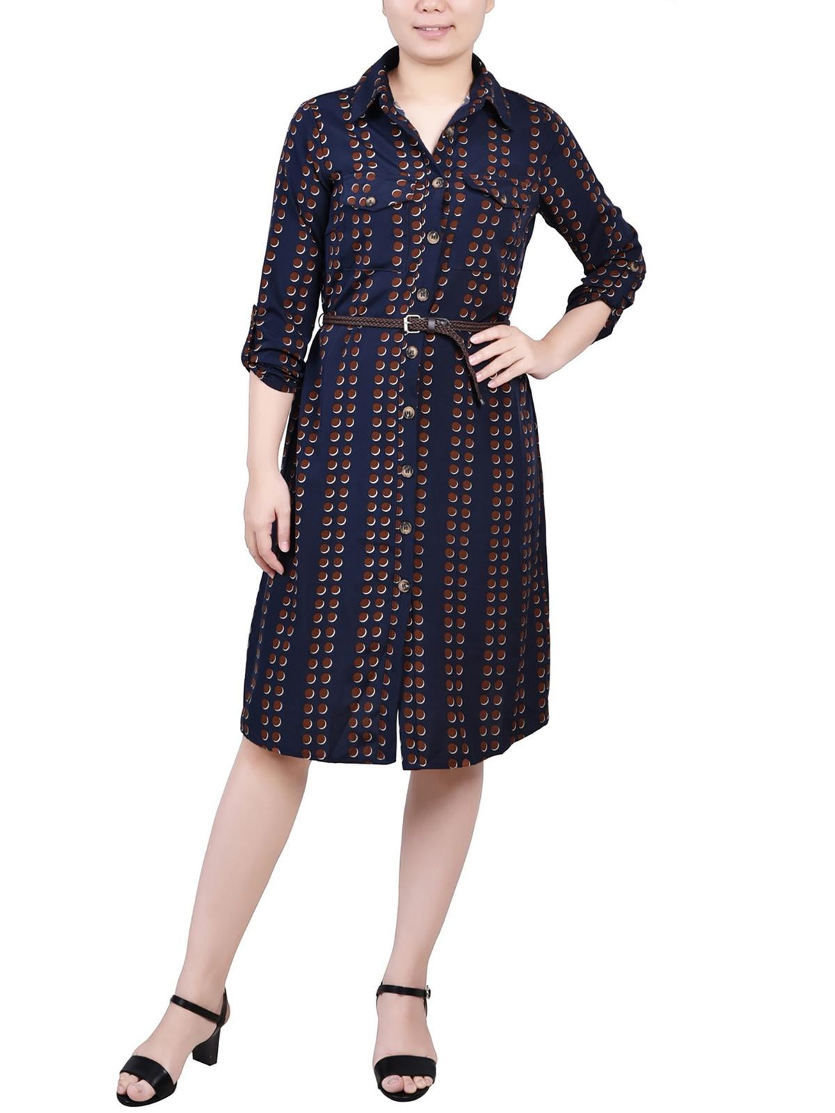 NY Collection Womens Petites Polka Dot Pocket Shirtdress Size PL Brown Navy