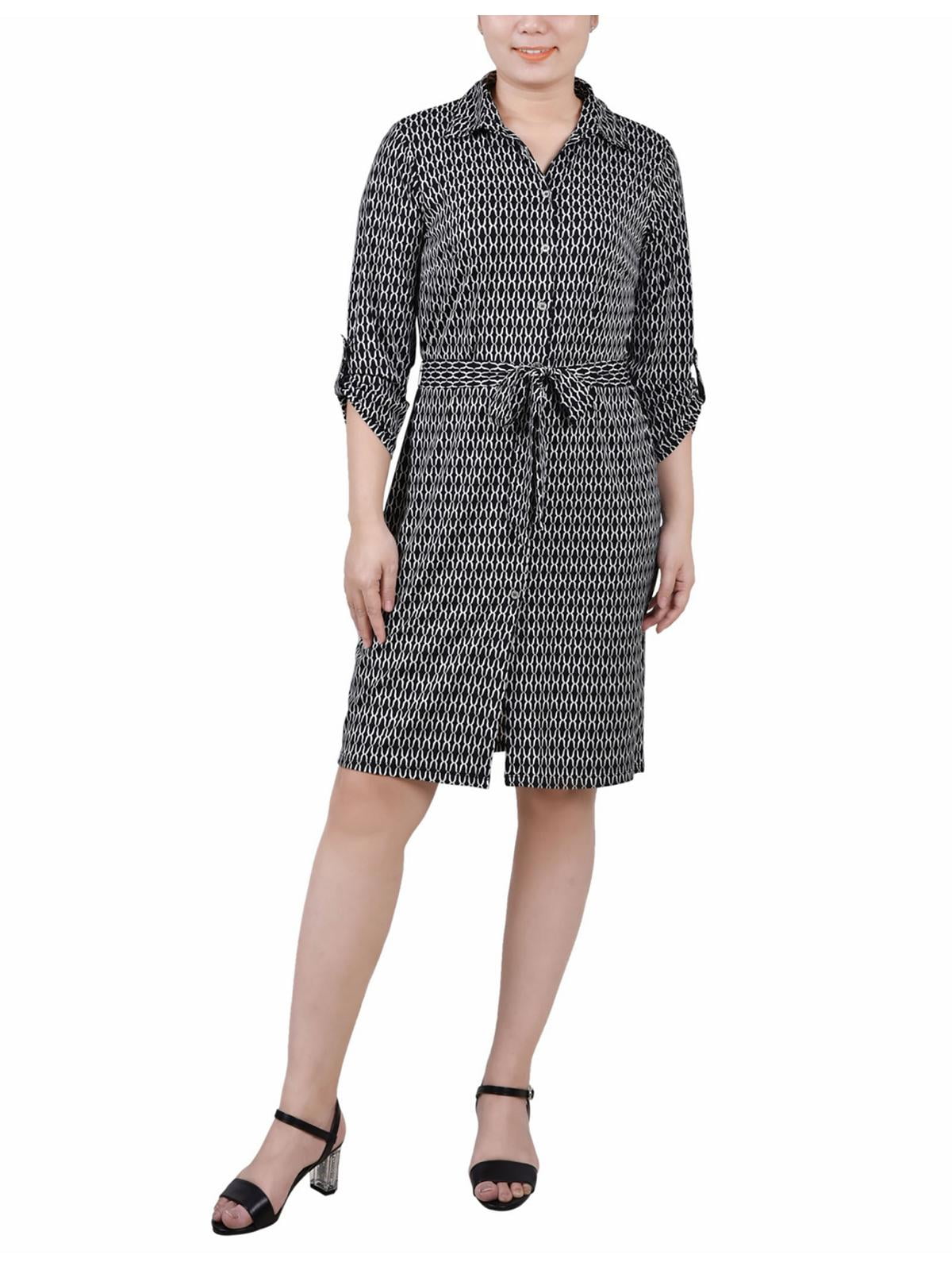 NY Collection Womens Petites Printed Above Knee Shirtdress Size L Petite Black