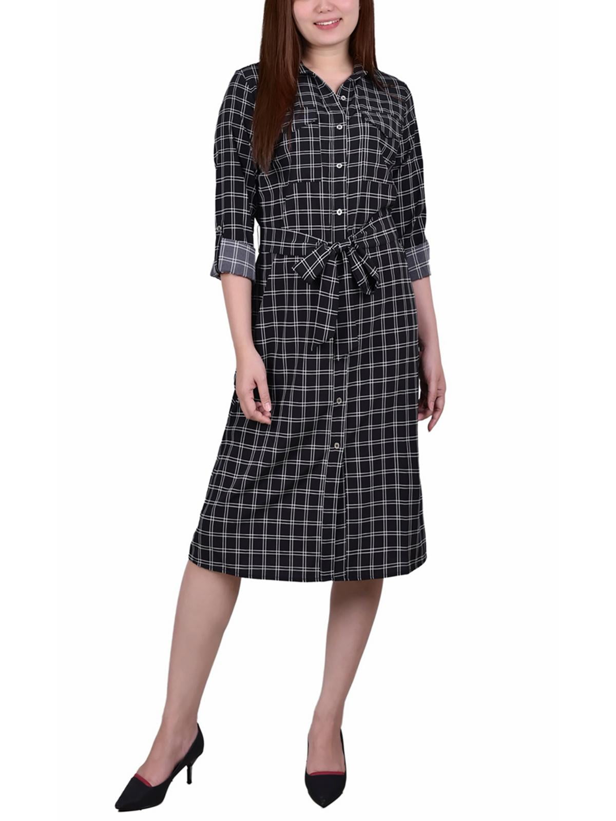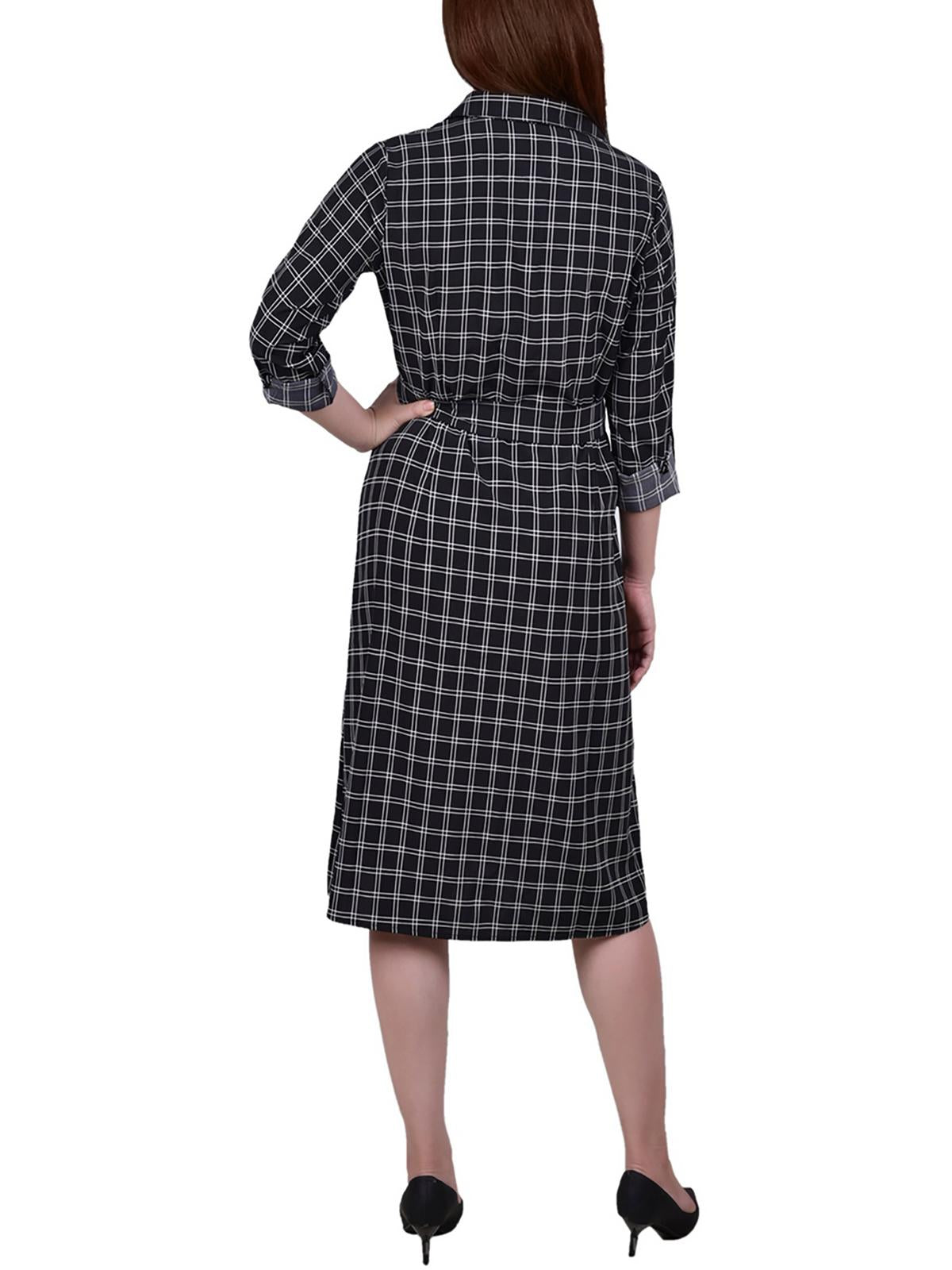 NY Collection Womens Petites Woven Animal Print Shirtdress Black Size PL