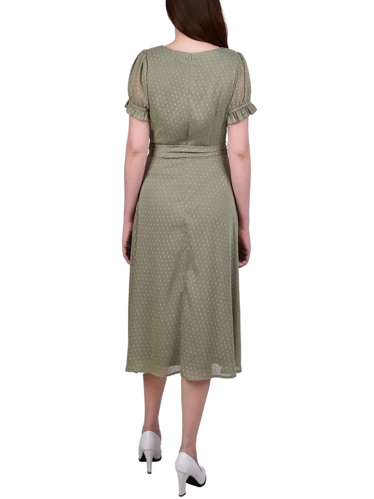 NY Collection Womens Swiss Dot Pin Tuck Midi Dress, Green, Petite, Size PL