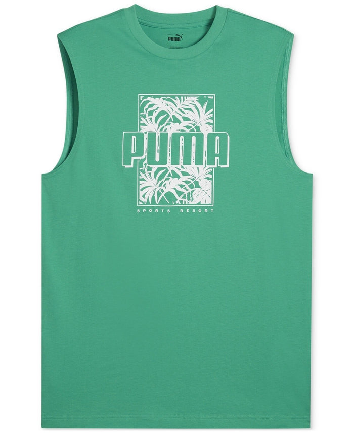 Puma Men's ESS+ Palm Resort Logo Graphic Sleeveless T-Shirt Green Size 2XL $25