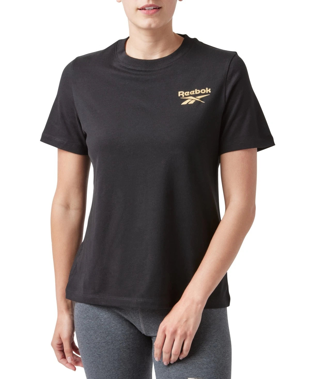 Reebok Women's Cotton Shine Gold Logo T-Shirt Size XS