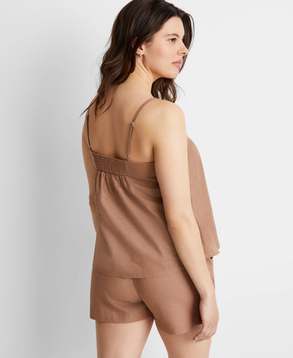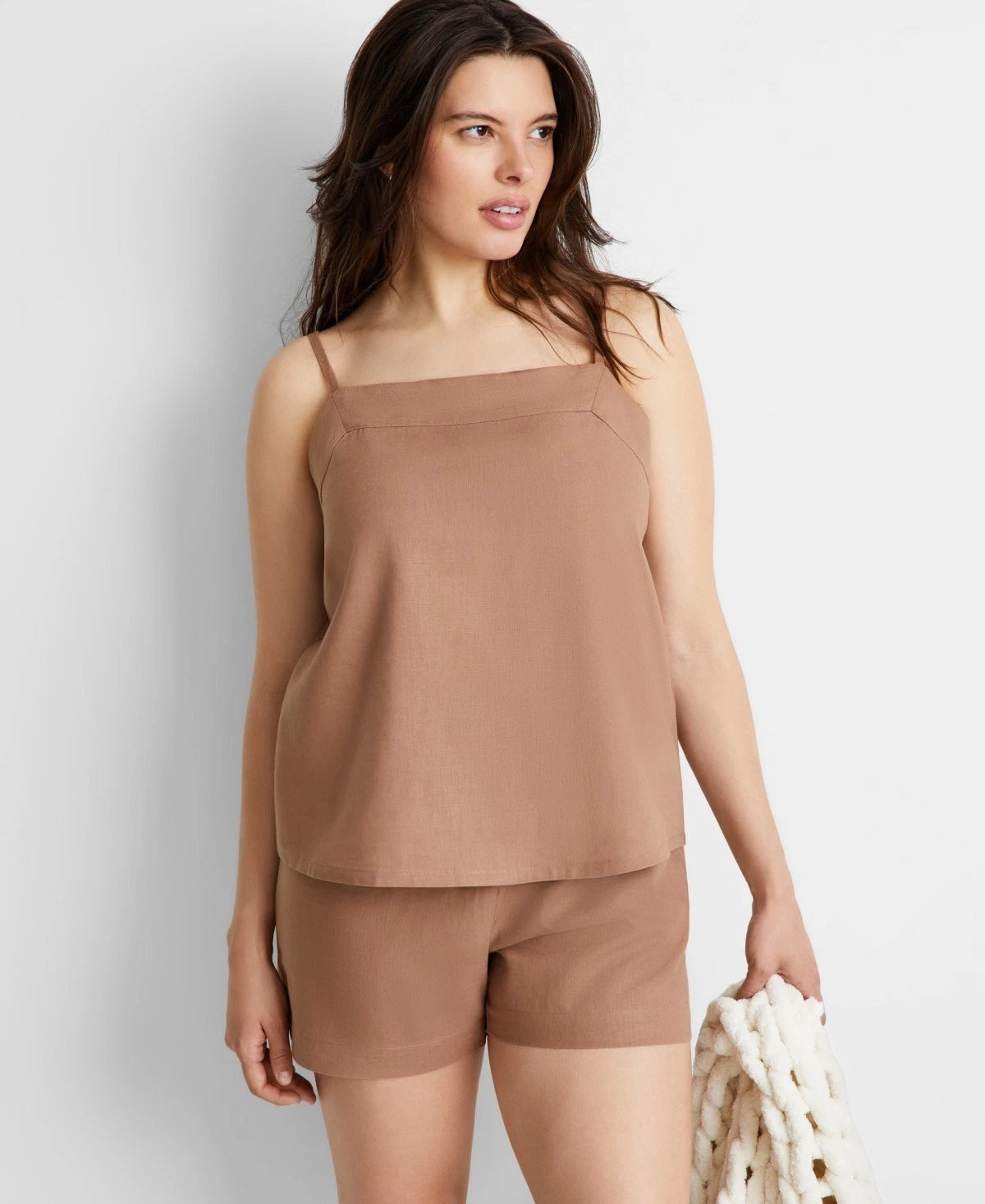 State of Day Women's 2-Pc. Sleeveless Linen Pajamas Set Brown Size XXL MSRP $65