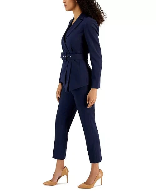 Tahari ASL Belted Jacket Pantsuit Jacket & Pants Blue Navy Size 12 MSRP $229