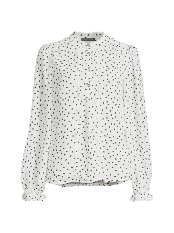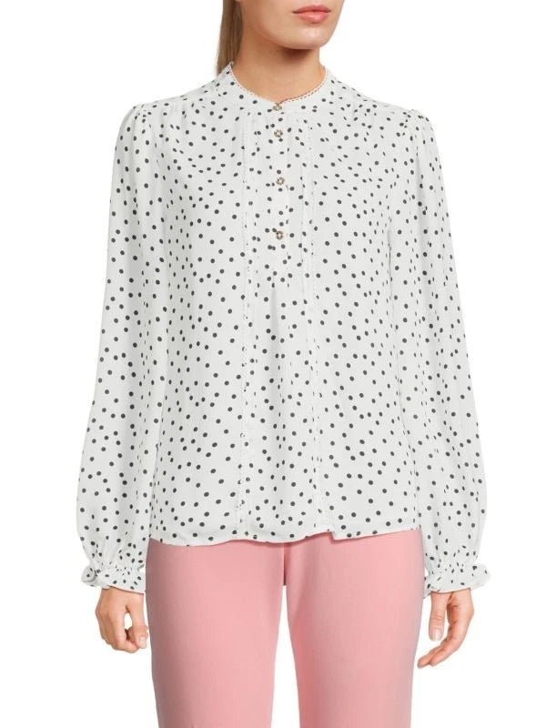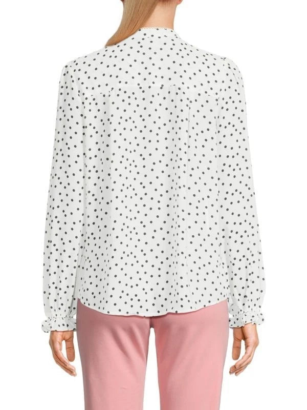 Tommy Hilfiger Highneck Polka Dot Blouse White Size M MSRP $79