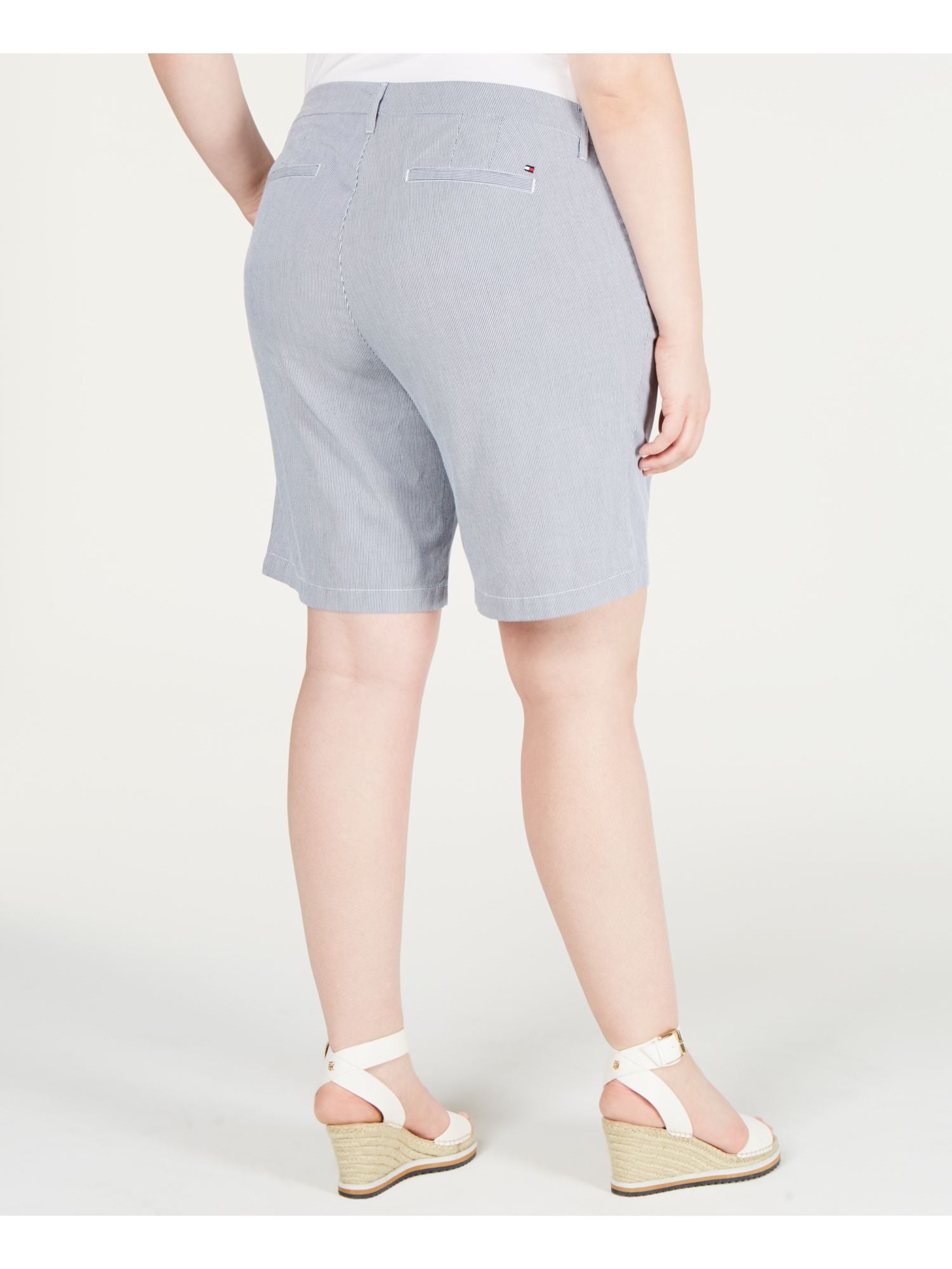 TOMMY HILFIGER Women Blue Pocketed Chino Pinstripe Shorts Plus Size 22W MSRP $70
