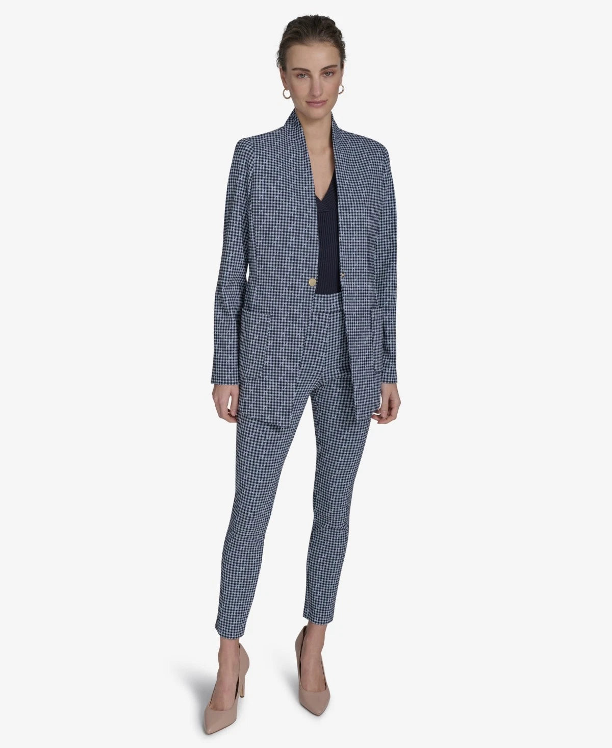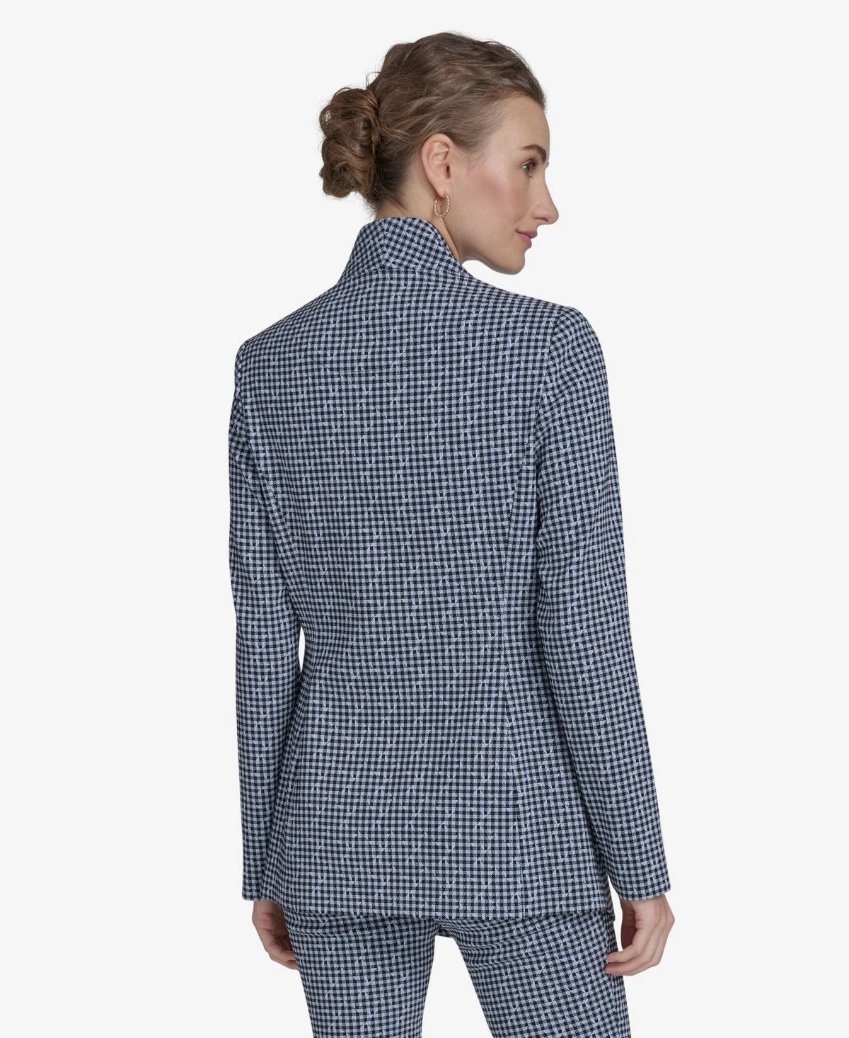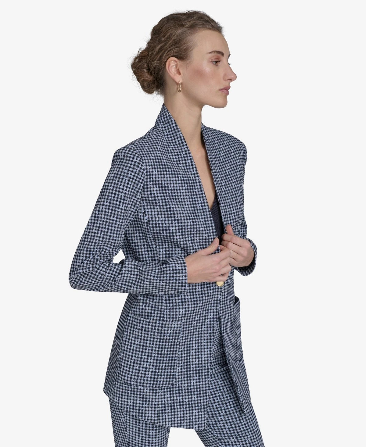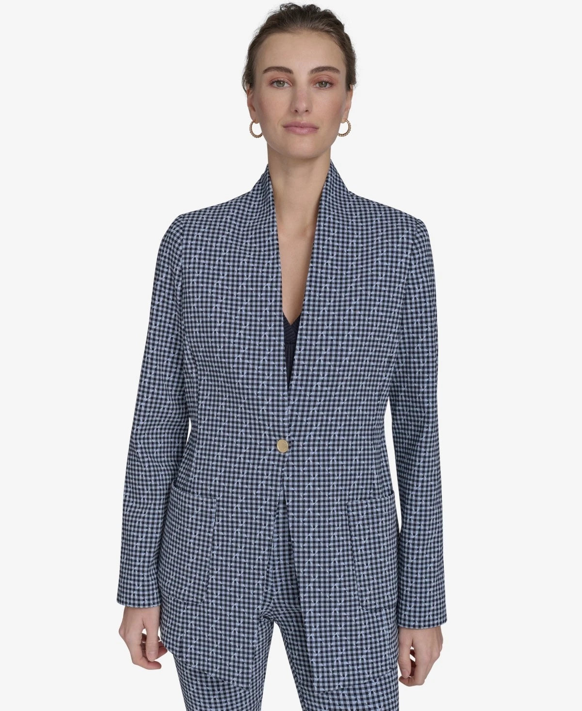 Tommy Hilfiger gives you effortless layering style with this snap-front gingham-print blazer.