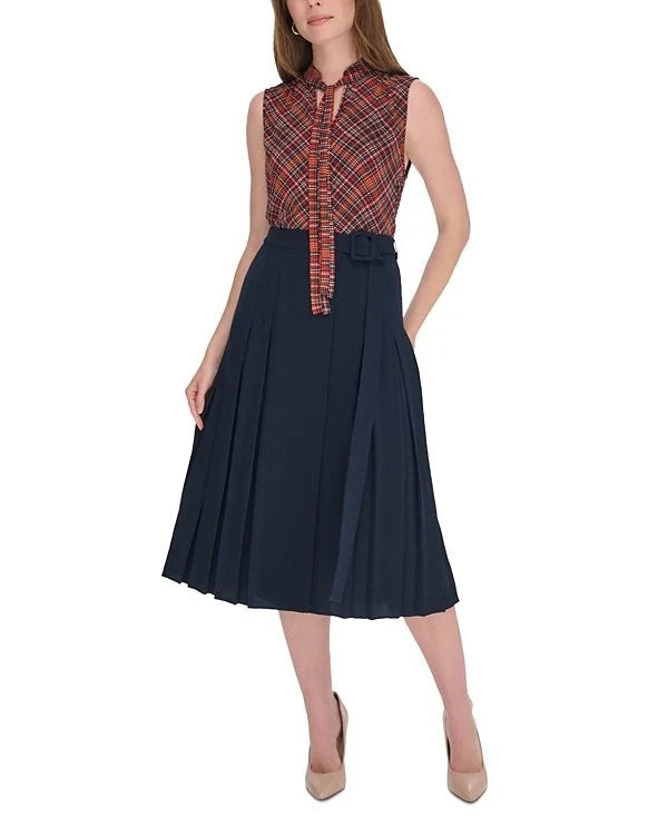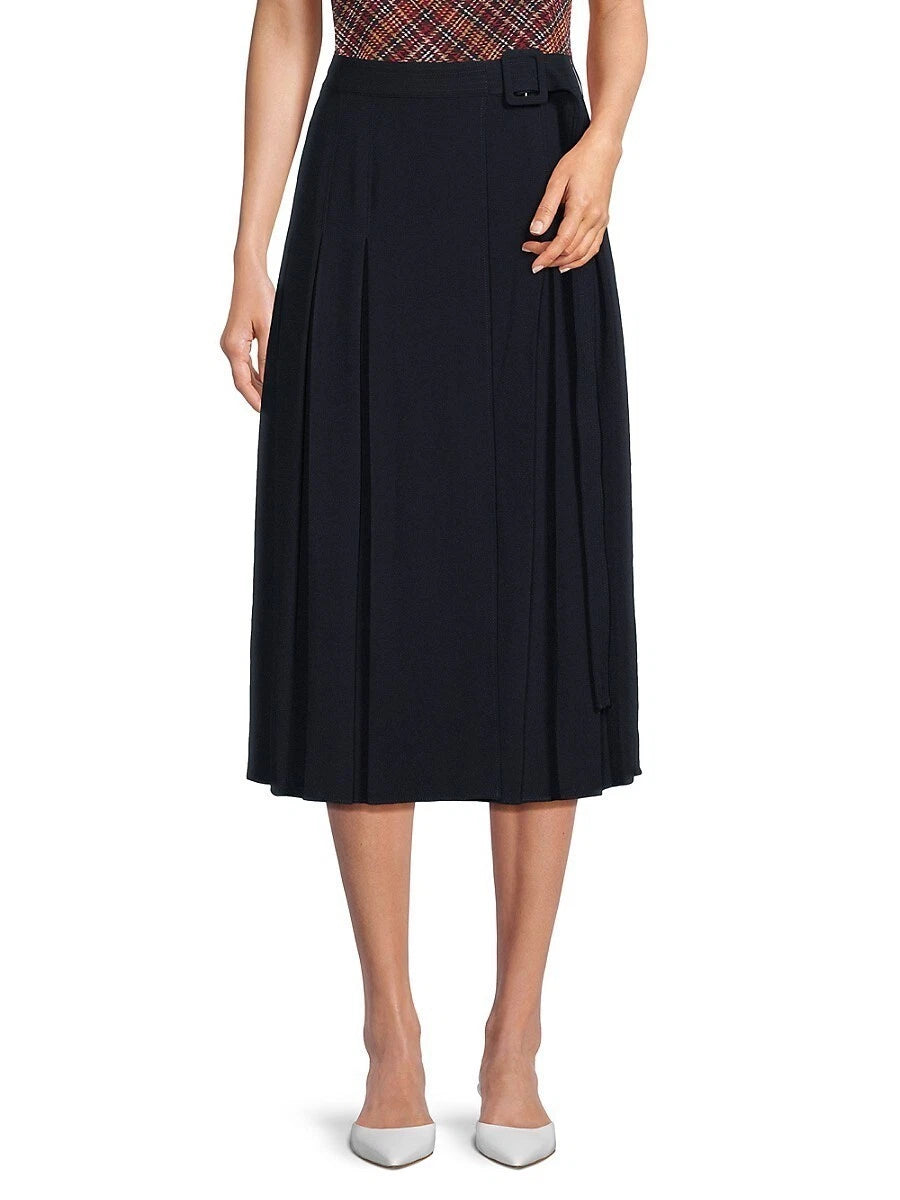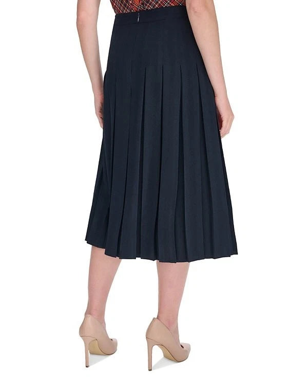 Tommy Hilfiger Women's Belted Midi Pleat Skirt Navy Blue Size 12 MSRP $119