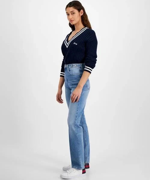 Tommy Hilfiger Women's Blue Julie Straight-Leg Button-Waist Jeans Size 24X28