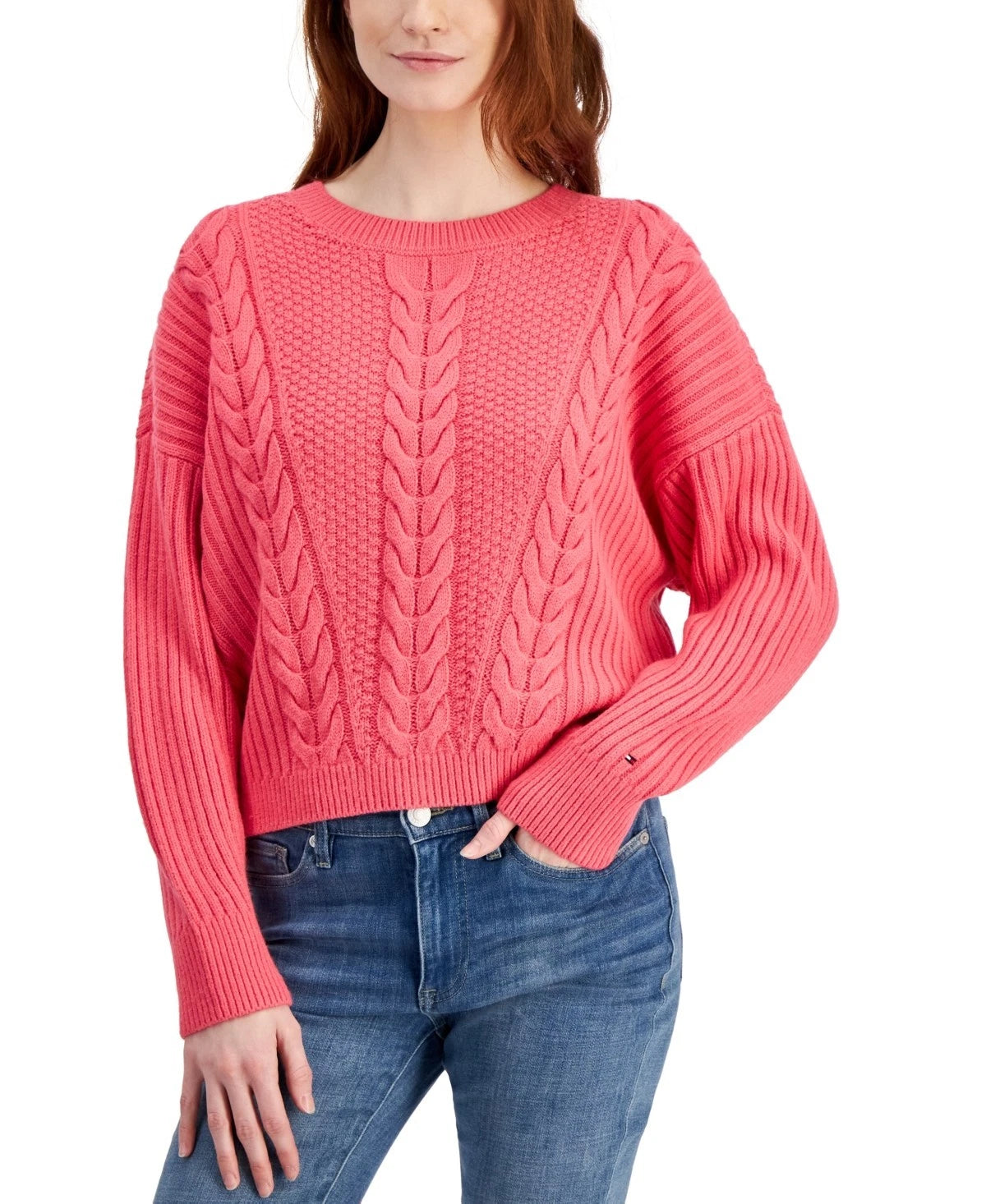 Tommy Hilfiger Women's Cable-Knit Drop-Shoulder Sweater Red Size XL MSRP $80