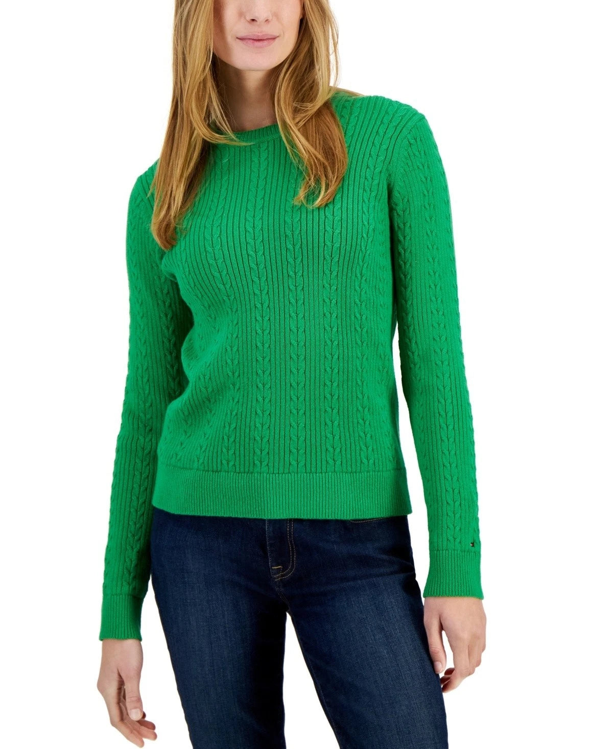 Tommy Hilfiger Women's Cotton Mirrored Cable-Knit Sweater Green Size XL MSRP $80
