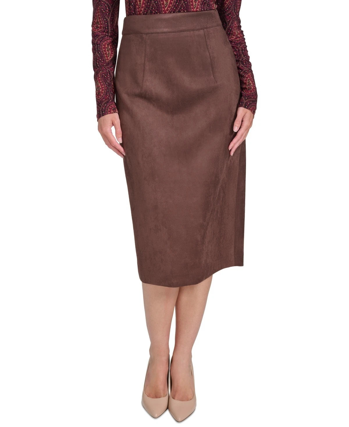 Enjoy the rich texture of this faux-suede pencil skirt from Tommy Hilfiger.