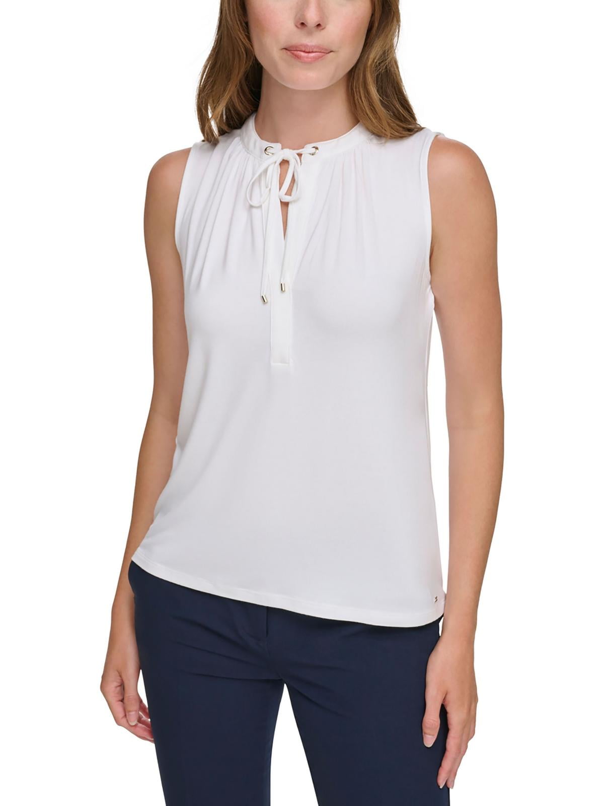 Tommy Hilfiger Womens Tie Neck V-Neck Pullover Top Size S White MSRP $54