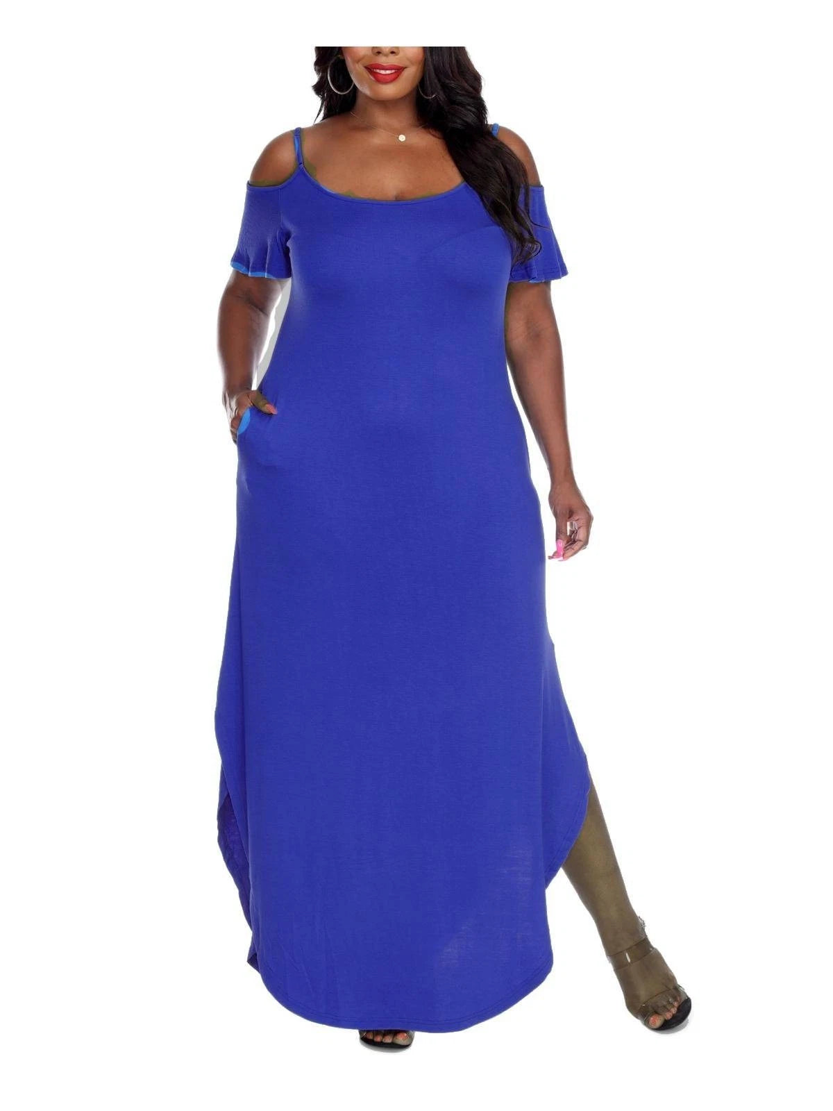 White Mark lexi womens jersey cold shoulder maxi dress Royal Blue Plus Size 1XL