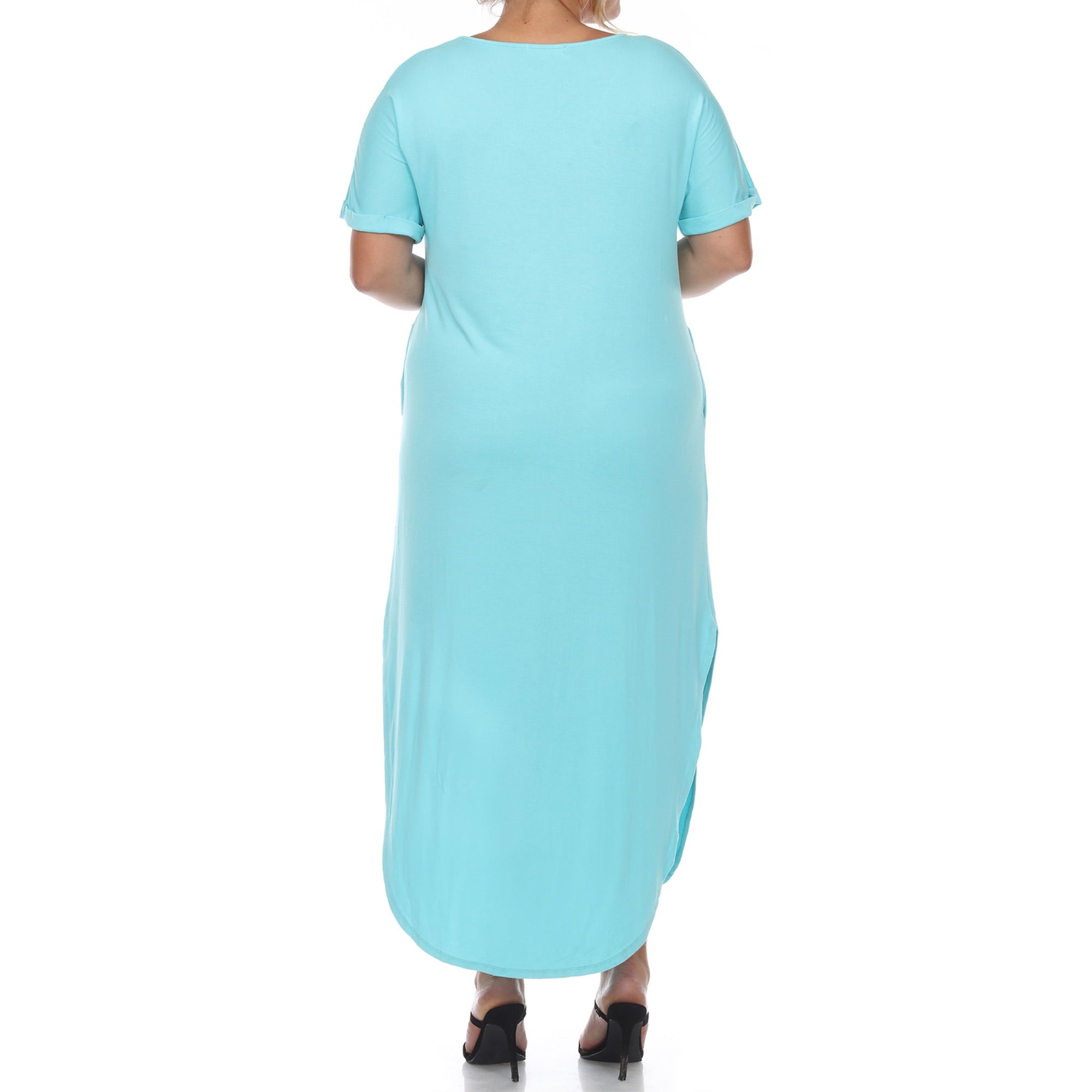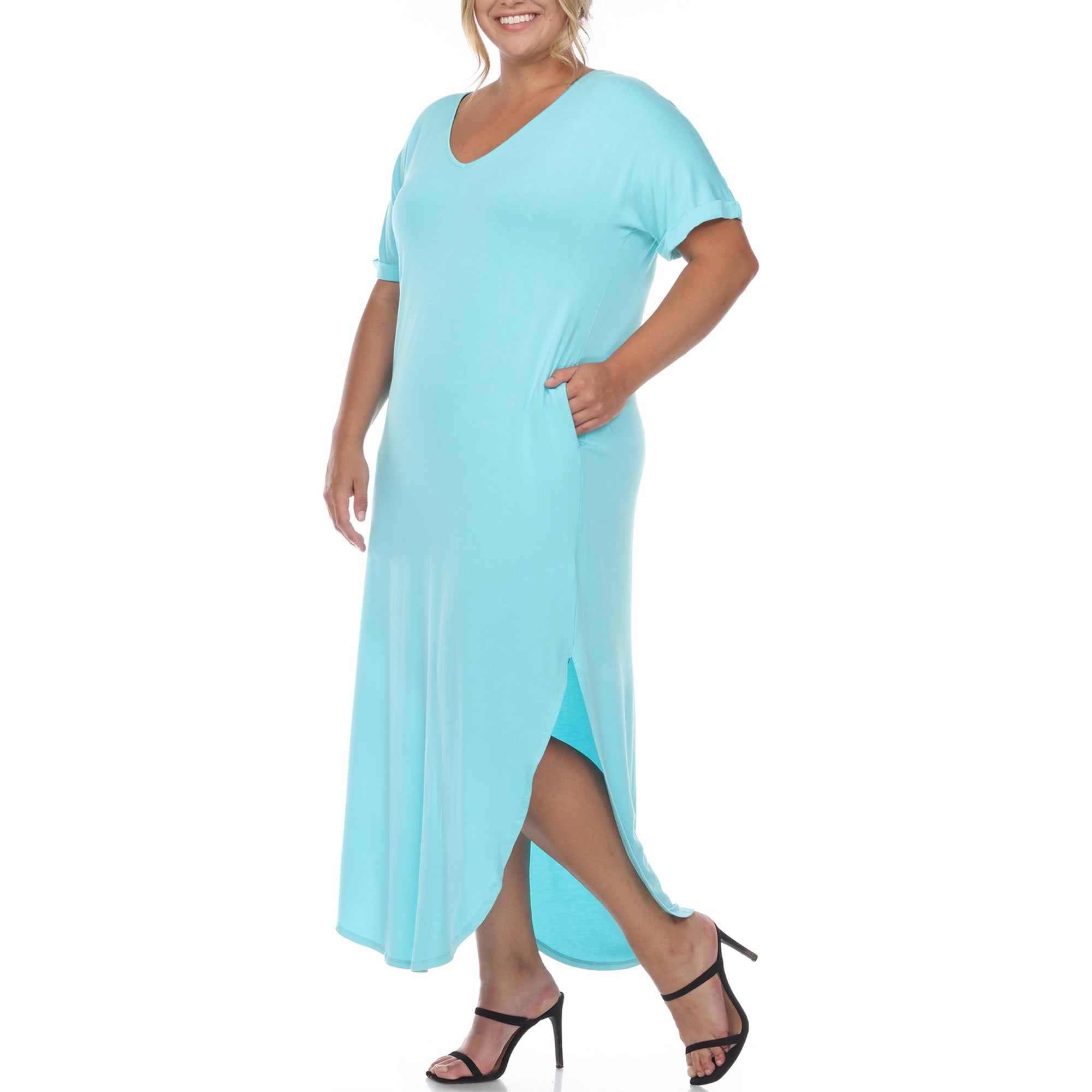 Move with ease with White Mark Women's Plus Size Short Sleeve Maxi Dress! This all-day comfy dress has a very versatile loose-fitting cut that exudes elegance and flatters all body types. It features a classic V-neckline, curved hem, and 2 side pockets to store small essentials. Made from 96% Polyester and 4% Spandex. Wear it casually or add some accessories for a more stylish look.