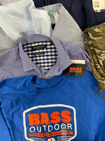 Men's Clothing Assorted Wholesale Lot, LAUREN RALPH LAUREN, BANANA REPUBLIC, TOMMY BAHAMA, BASS OUTDOOR, CLUBROOM and more 15 items, Shelf Pulls, MSRP $1,837