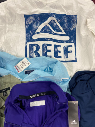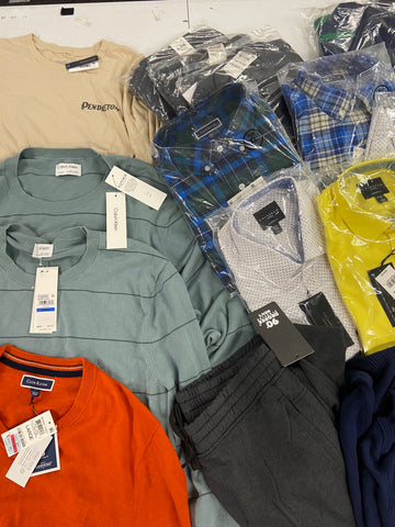 Men's Clothing Assorted Wholesale Lot, NIKE, ADIDAS, LUCKY BRAND, TAHARI, BUFFALO JEANS, KIRKLAND and more, 24 items, Shelf Pulls, MSRP $781