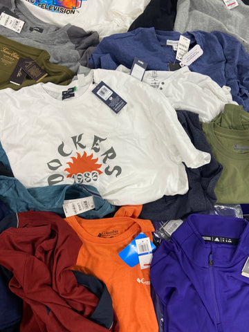 Men's Clothing T-Shirts & Others Wholesale Lot, ADIDAS, COLUMBIA, CALVIN KLEIN, UNDER ARMOUR, DOCKERS, UNIVIBE and more, 19 items, Shelf Pulls, MSRP $1,088