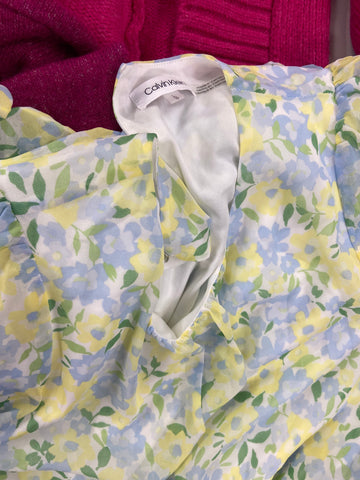 Michael Kors Foil-Print Smocked Peasant Dress Turquoise Blue Size S MSRP $125
