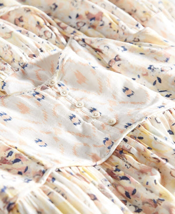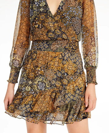 Sadie & Sage Printed Ruffled Mesh Mock-Neck Dress Womens Beige Size L MSRP $79