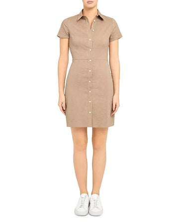 Theory Womens Linen Blend Mini Shirtdress Brown Pebble SIze 10 MSRP $365