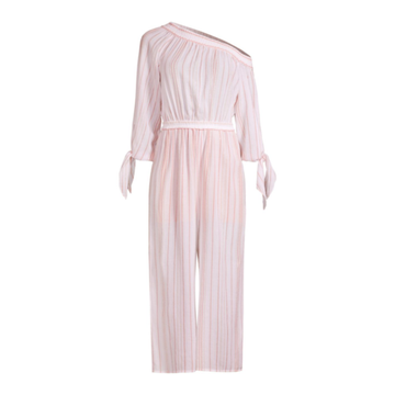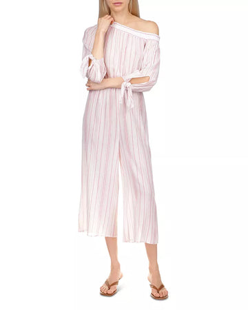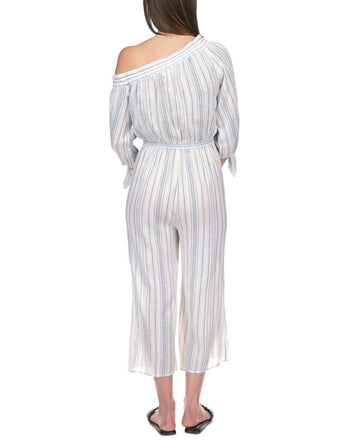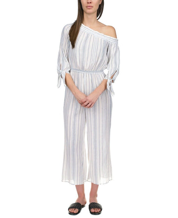 MICHAEL KORS Striped One-Shoulder Jumpsuit Blue White Size M MSRP $175