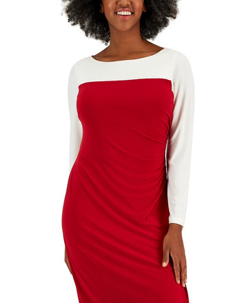 Kasper Ginger Colorblocked Midi Shift Dress Red Ivory Size M MSRP $89