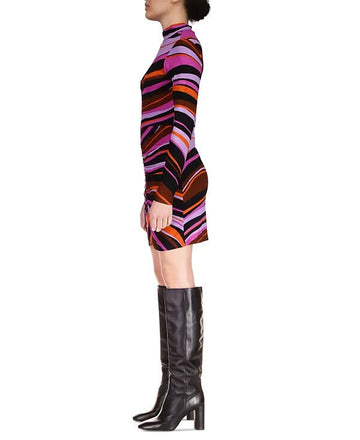 Michael Kors Foil-Print Smocked Peasant Dress Turquoise Blue Size S MSRP $125