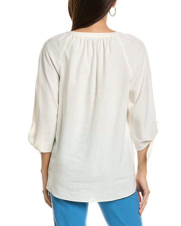 Jones New York womens Elbow Sleeve Linen-Blend Blouse, Size XS, White