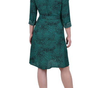 MICHAEL KORS Women Ruched-Front Roll-Tab-Sleeve Shirtdress Blue Size S MSRP $165