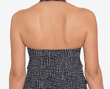 Swim Solutions Women's Printed Tiered Halter Tankini Top Black Size 10 MSRP $72