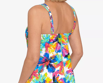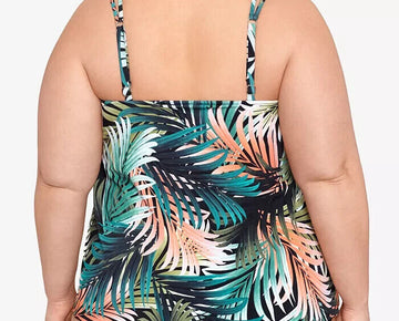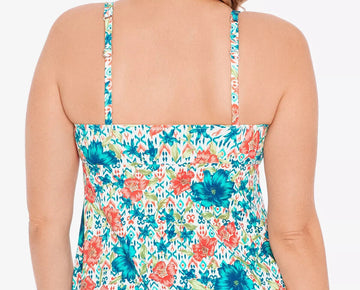 Swim Solutions Women's Printed High-Low Tankini Top Blue Green Size 14 MSRP $72