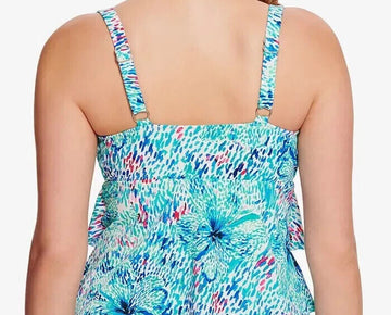 Swim Solutions Women's Printed Tiered Tankini Top Blue Size 10 MSRP $72