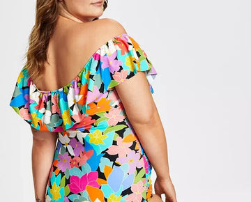 SWIM SOLUTIONS Triple-Tier Tummy-Control One-Piece Swimsuit Black Plus Size 24W