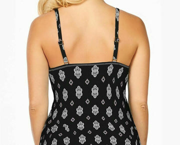 Island Escape Sands Cali Printed Tankini Swim Top Womens black Size 10 MSRP $35