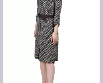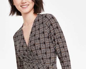 Anne Klein Women's V-Neck Side-Tie Faux-Wrap Dress Brown Black Size XL MSRP $99