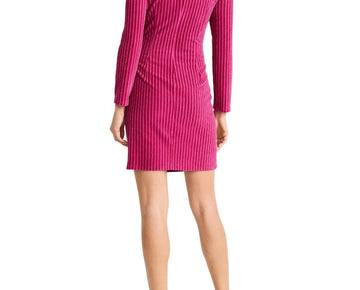 Donna Morgan Women's Striped Velvet Faux-Wrap Dress Size 12 Pink MSRP $138