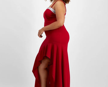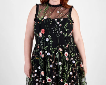 City Studios Trendy Plus Size 16W Black Mock-Neck-Embroidered Mesh Dress $109