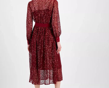 Anne Klein Petite Sequined Mixed-Media Tie-Waist A-Line Dress Red Size 12P $159