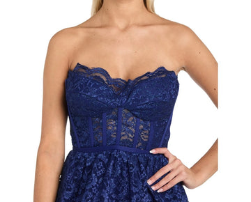 Taylor Women's Velvet Burnout Smocked Fit Flare Dress Navy Blue Size 6 MSRP $128
