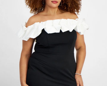 NY Collection 3/4 Sleeve Off-The-Shoulder Crepon Dress Plus Size 1X Black