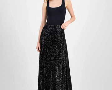 Anne Klein Women's Sequin Flared Maxi Skirt Black Size S MSRP $129