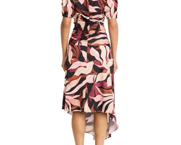 Nautica Jeans Women's Floral Smocked-Waist Midi Skirt Red Size M MSRP $100