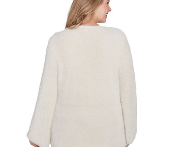 HEARTS OF PALM Plus Size 1X To Shine Eyelash V-Neck Sweater Ivory Gold MSRP $62