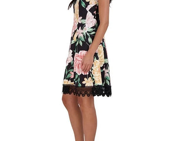 Donna Ricco Women's Lace-Hem Floral-Print Sheath Dress Black Size 6 MSRP $119