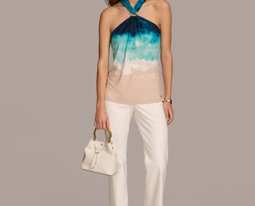 Michael Kors Women's Satin Chain Halter Top Black Size M MSRP $125